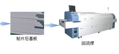 通過(guò)回流焊的預(yù)熱、升溫、降溫等不同溫區(qū),實(shí)現(xiàn)貼片后照明燈具基板線路板與SMD LED之間焊膏的熔化焊接,完成PCB板電路環(huán)境的建立;